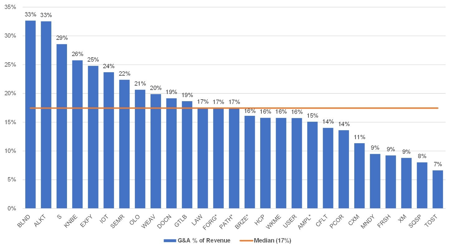 The median LTM general and administrative as a % of revenue for this group is 17%.