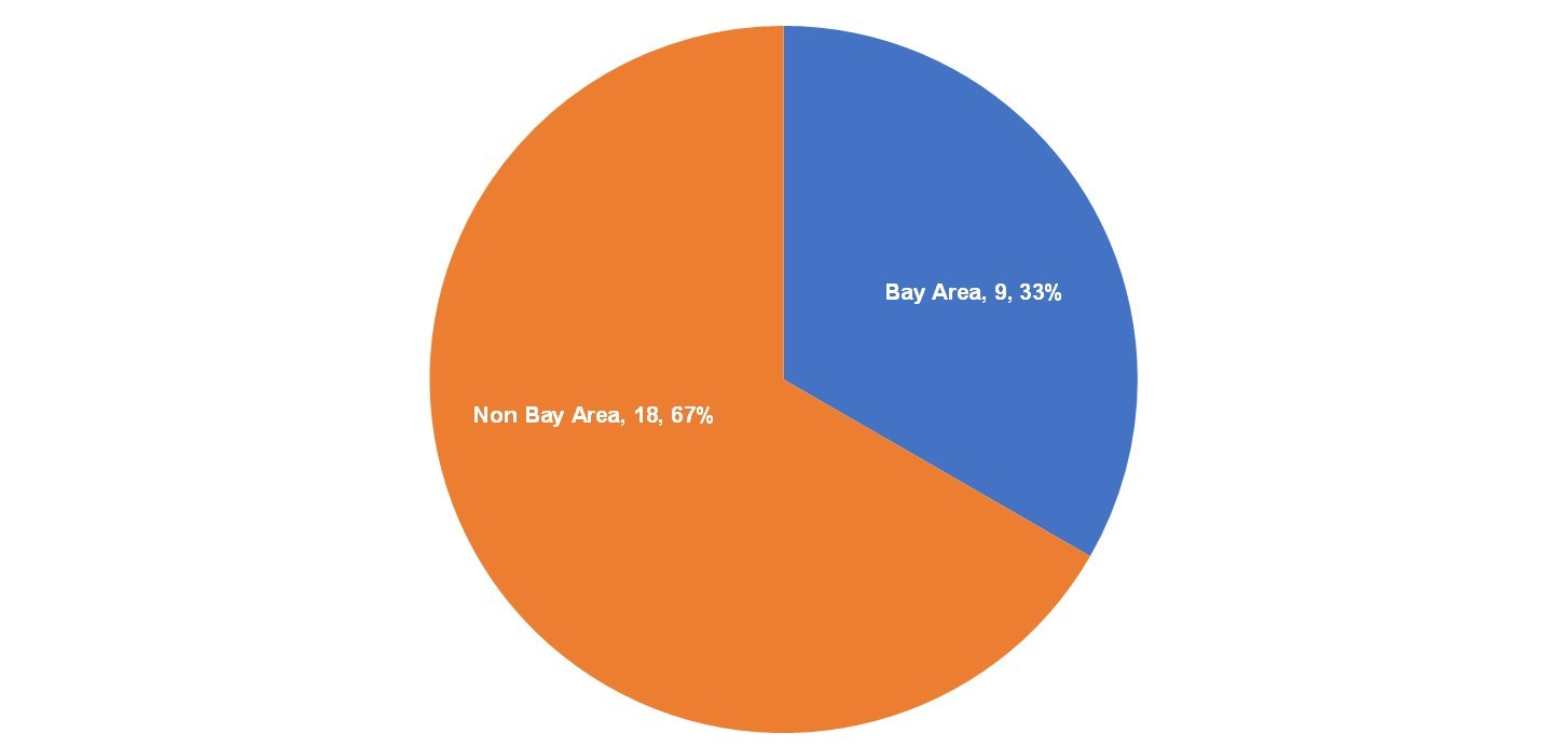 Less than 40% of the SaaS IPOs in 2020 were based in Silicon Valley and that trend has continued in 2021 with only 33% in the Bay Area. At Meritech, many of our investments are based outside Silicon Valley and we expect to see many more IPOs from non-Silicon Valley companies.