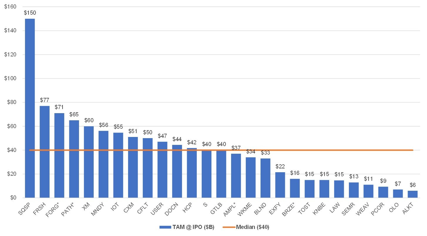 While the TAM analysis in S-1’s are not an exact science they are still helpful to look at in aggregate. The median TAM is massive at $40B.