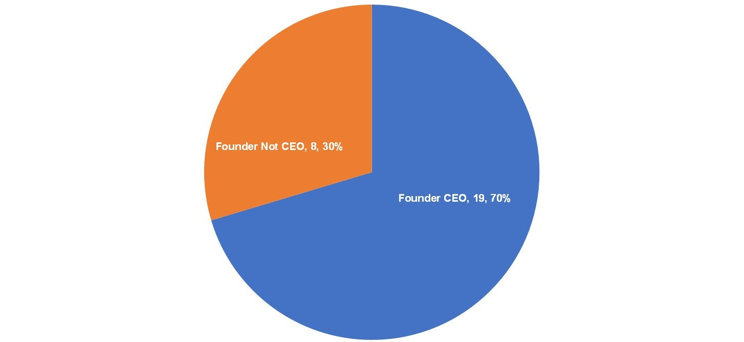 Some companies have new CEOs but as the chart below shows, 70% of companies had a founder as the CEO at the time of IPO.