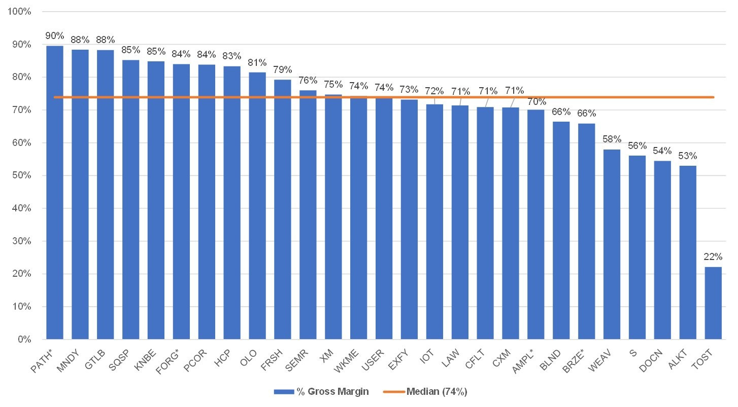 The median LTM gross margin for this group is 74%.