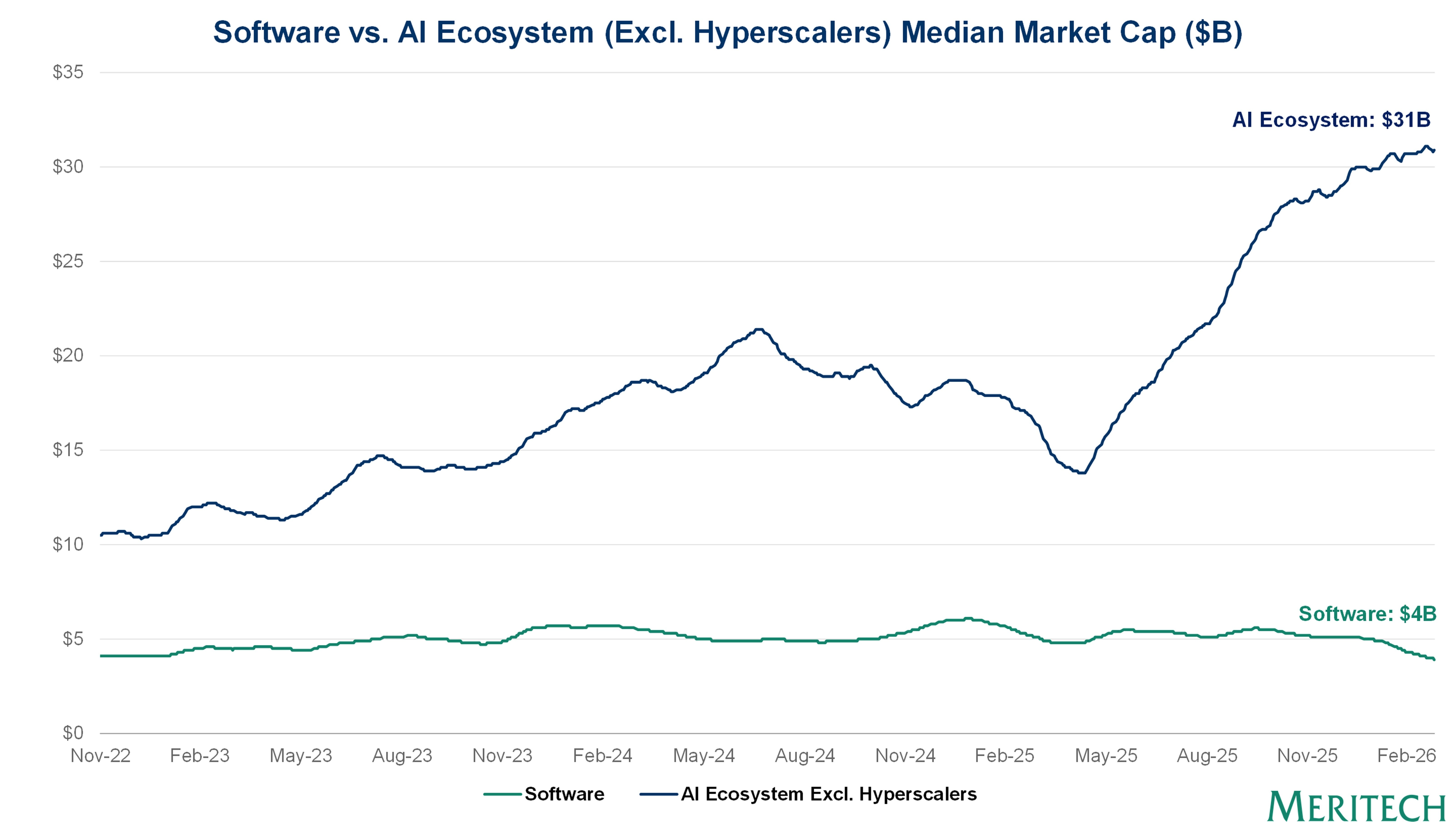 Software vs AI Ecosystem (Excl. Hyperscalers) Median Market Cap ($B)