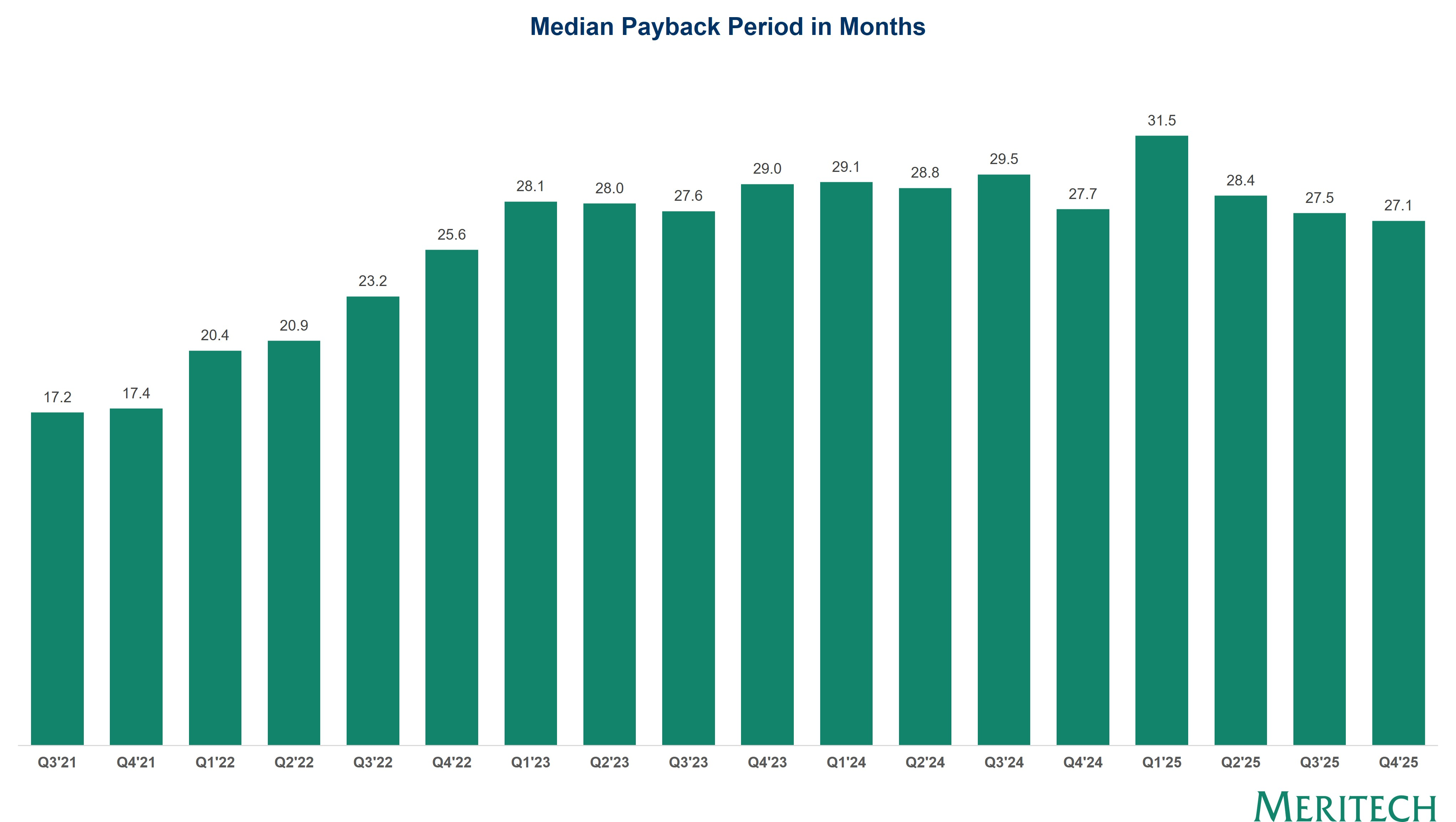 Payback periods have risen up since the end of ZIRP, but have been declining since Q2’25.