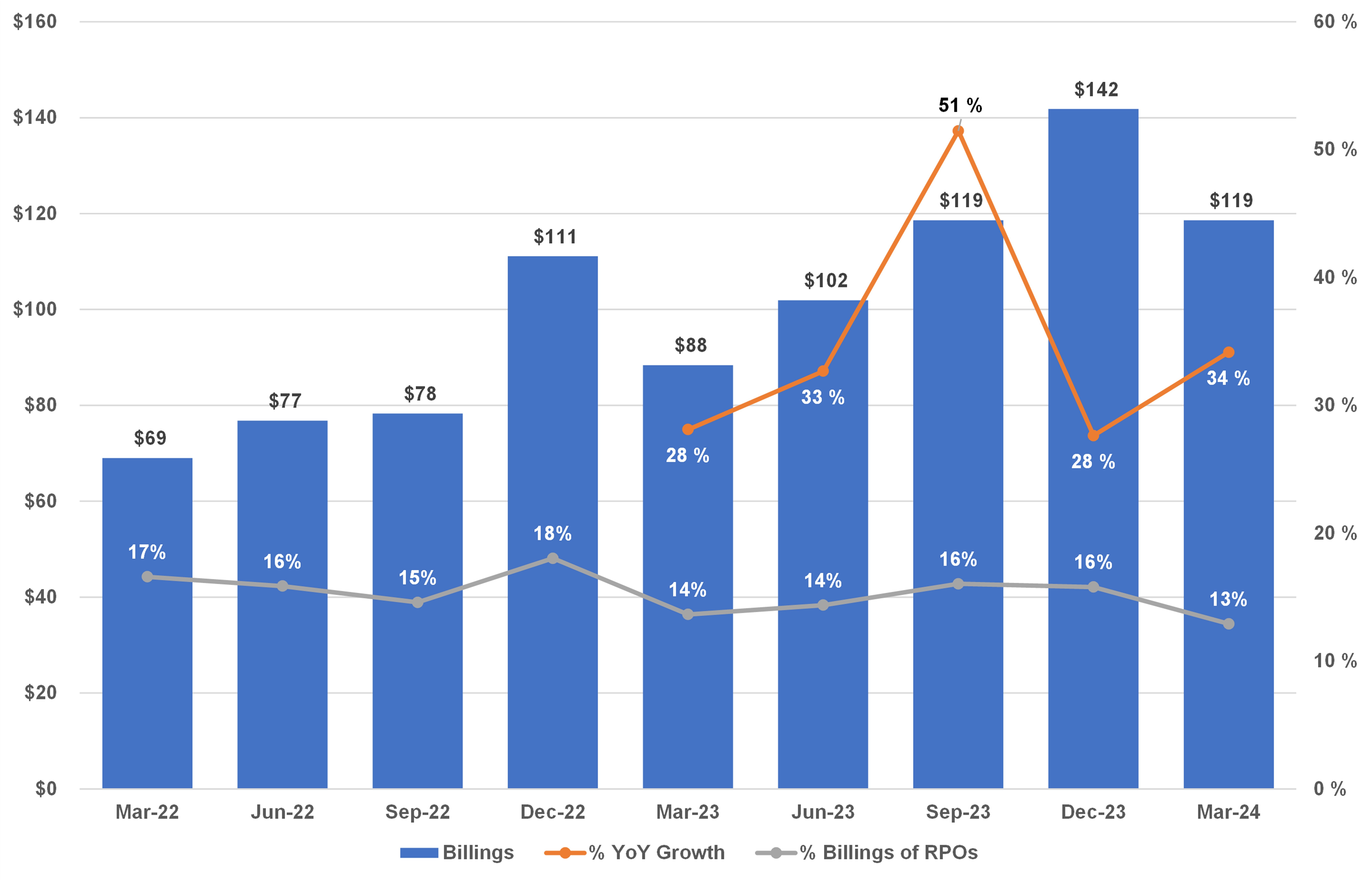 Total Billings, Growth and % of Billings of RPOs ($M)