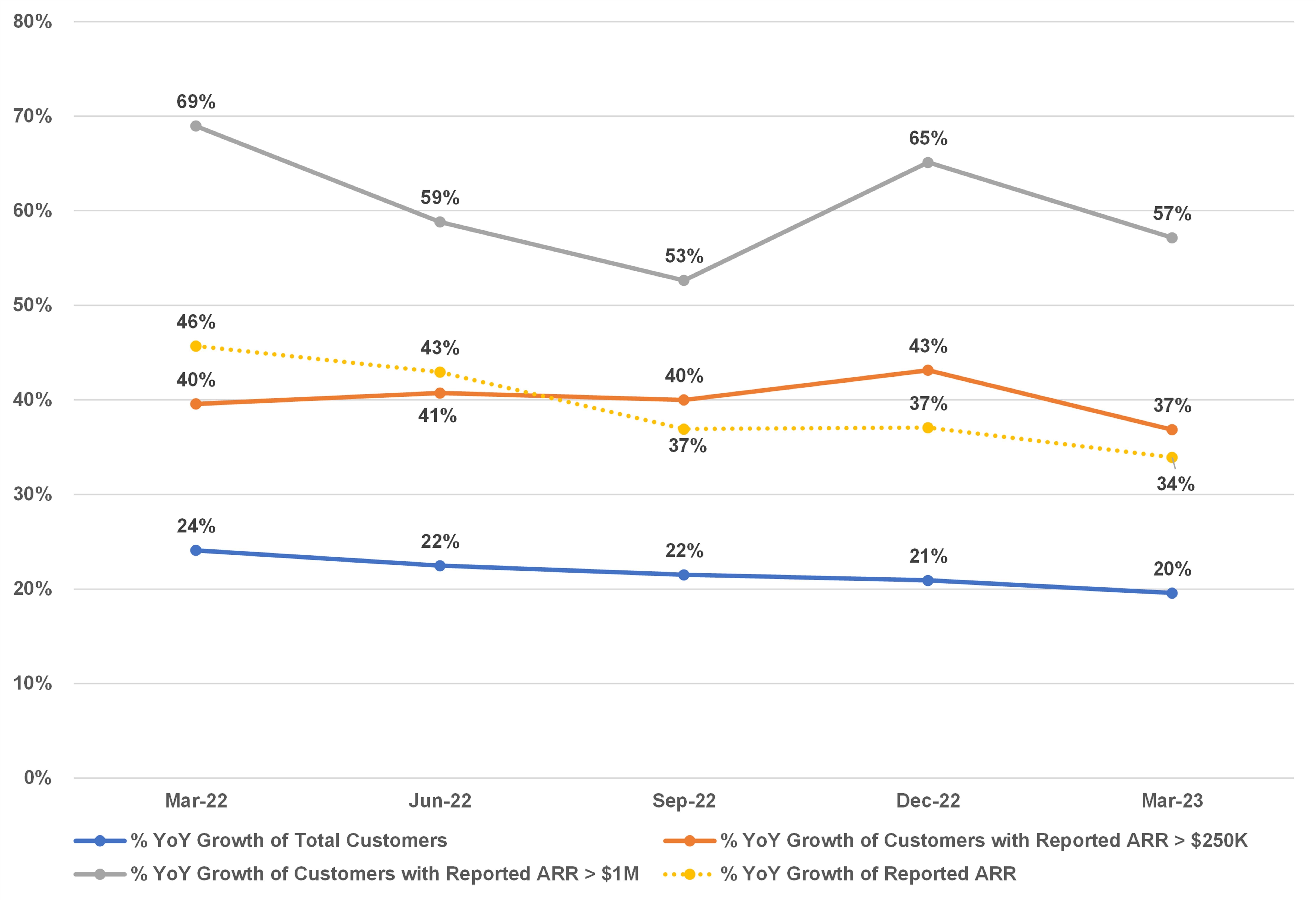 OneStream is moving further up market and it shows in the growth rates of their larger customer segments. Customers >$1M in ARR are growing 57% year-over-year and customers >$250K are growing 37% year-over-year, both much faster than the total at 20% and faster than total ARR growth. The continued growth of these larger customer segments will be an area of focus in the coming quarters.