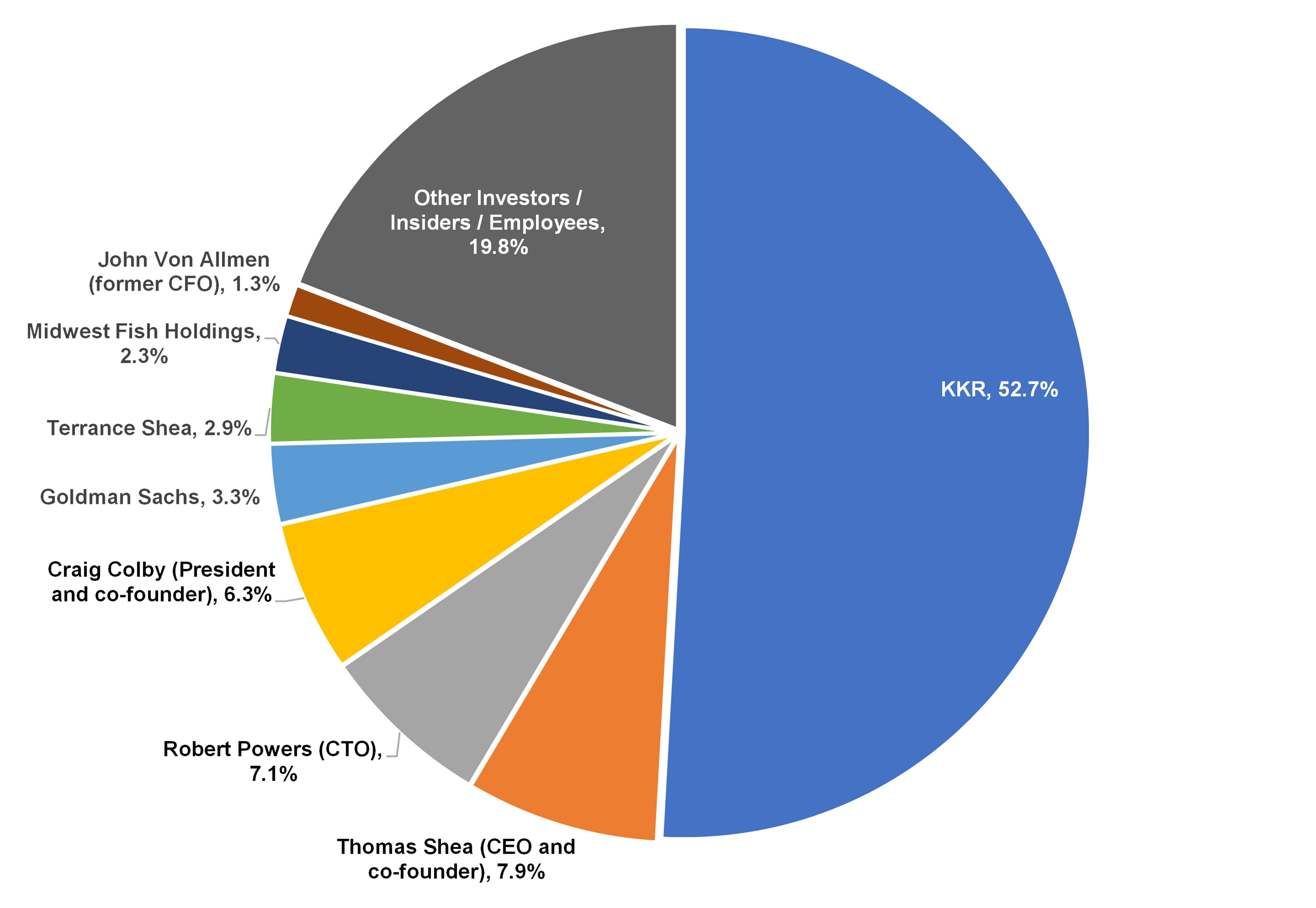 KKR acquired a majority stake in OneStream for a $1B+ valuation in March 2019 (reported $500M investment, according to Pitchbook). Other investors include D1 Capital Partners, Partners Fund Capital and Tiger Global Management. KKR is the only 5%+ institutional investor shareholder, owning ~53% of common stock. CEO and co-founder Thomas Shea holds an ~8% pre-offering stake. The company’s last round was a $200M growth round led by D1 Capital Partners, Tiger Global Management and Investment Group of Santa Barbara in April of 2021 at a $6.0B valuation, according to Pitchbook.