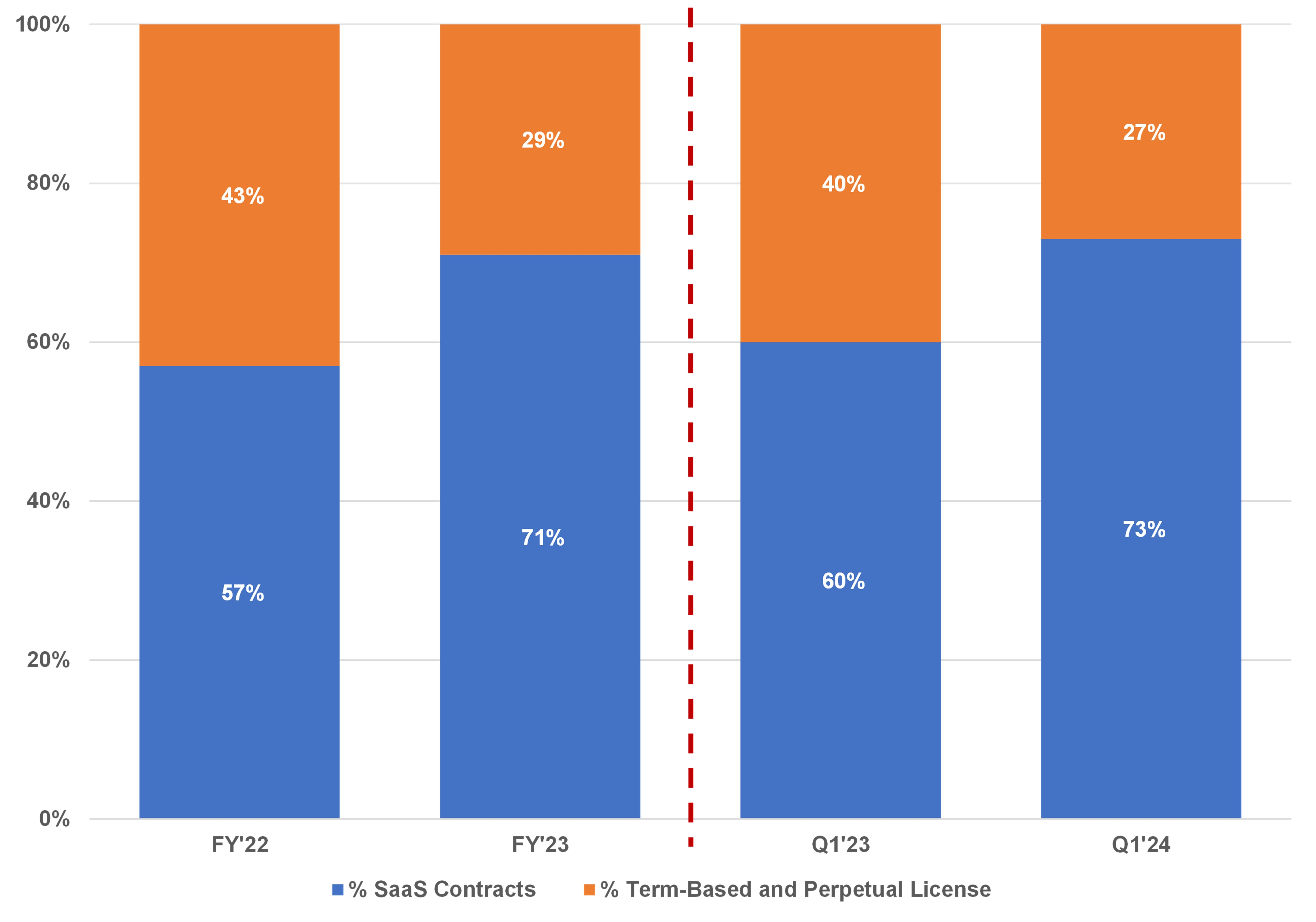SaaS contracts will continue to represent the vast majority and OneStream will offer perpetual licenses to customers only in limited circumstances, such as in their Federal business or regulated industries. Seasonality exists and is apparent mostly in Q3 and Q4