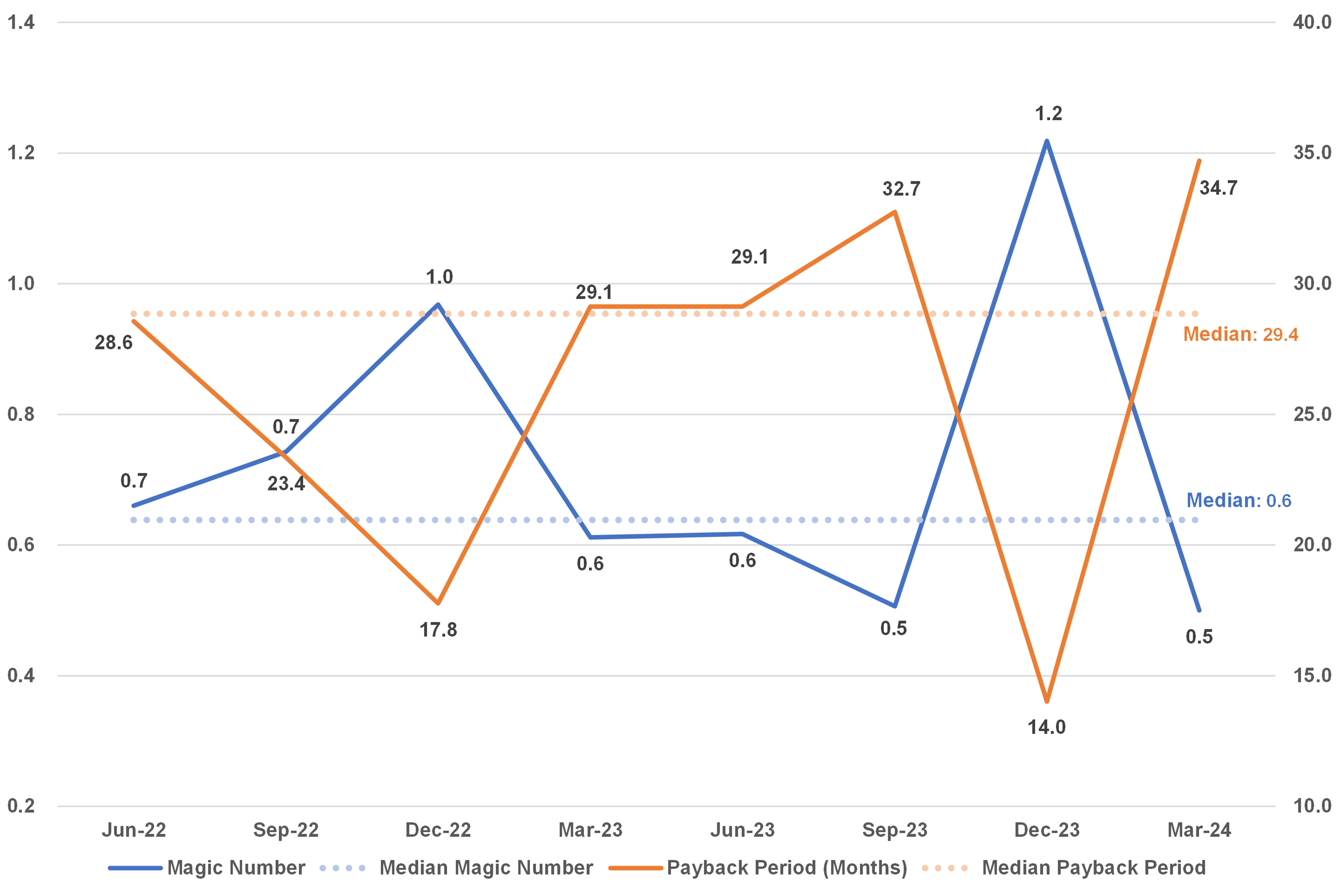 Sales Efficiency and Payback Periods by Quarter