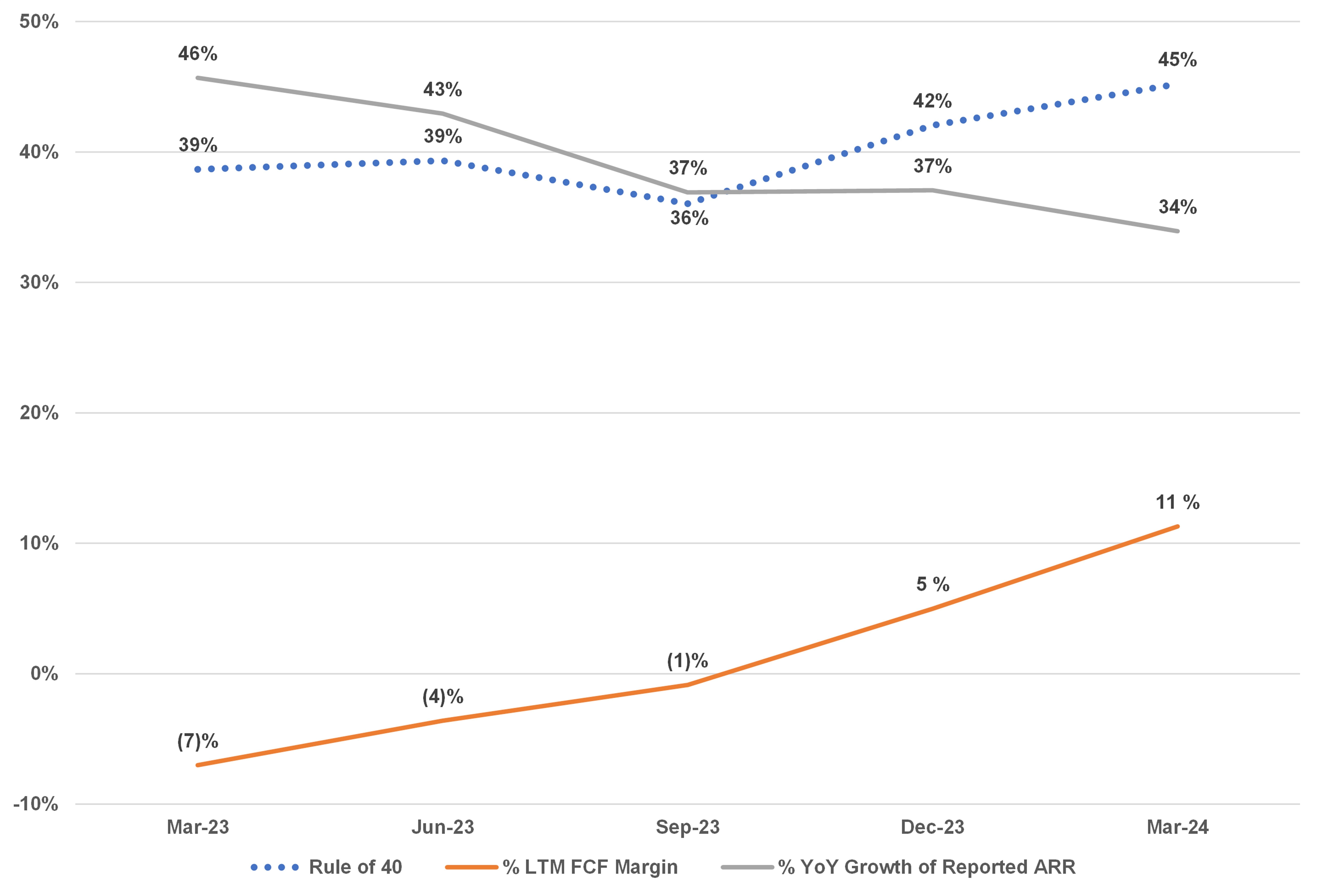 Rule of 40, % LTM FCF Margin and Year-over-Year % Reported ARR Growth