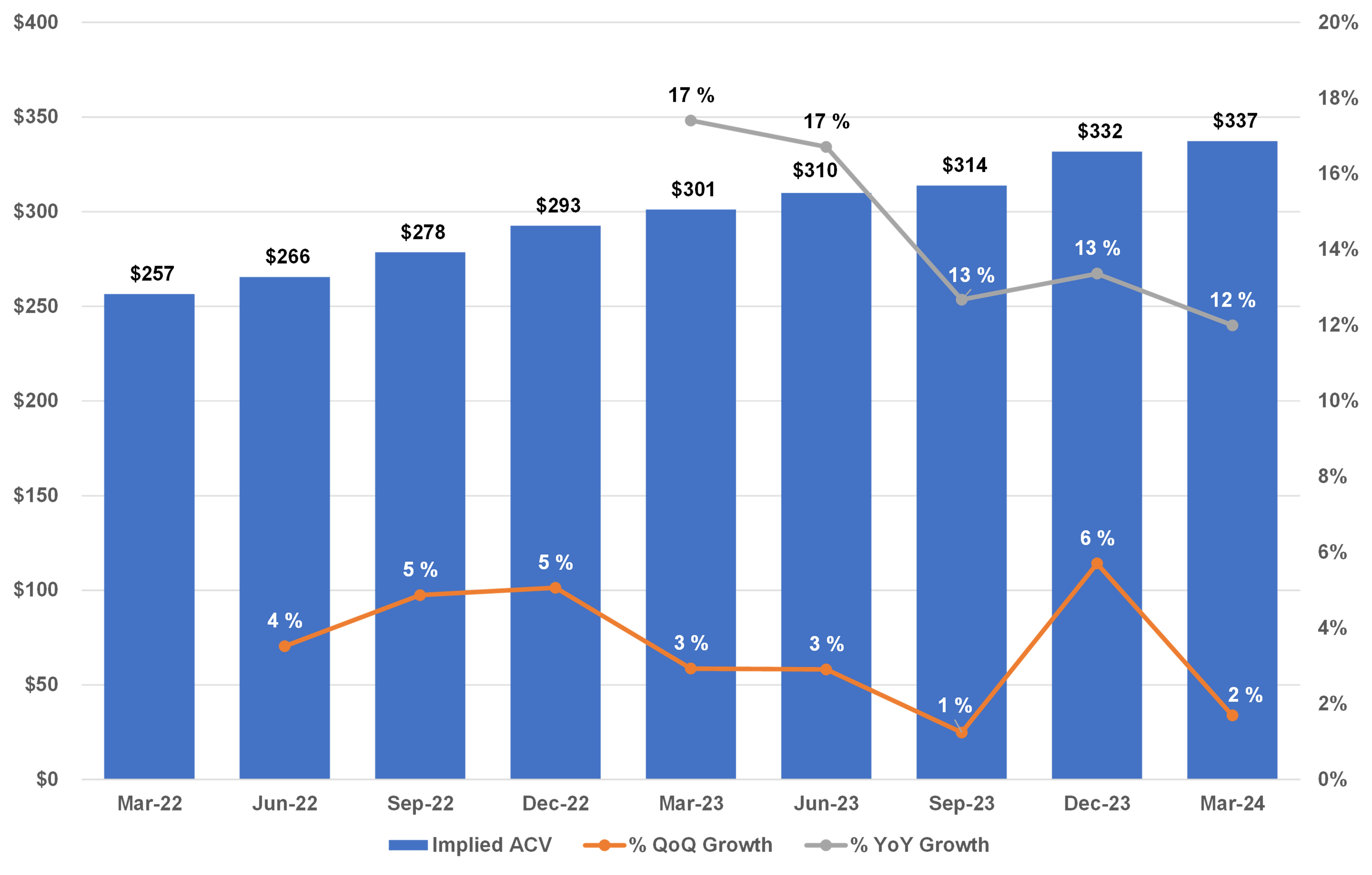 Implied Average ACV by Quarter and Growth ($000’s)