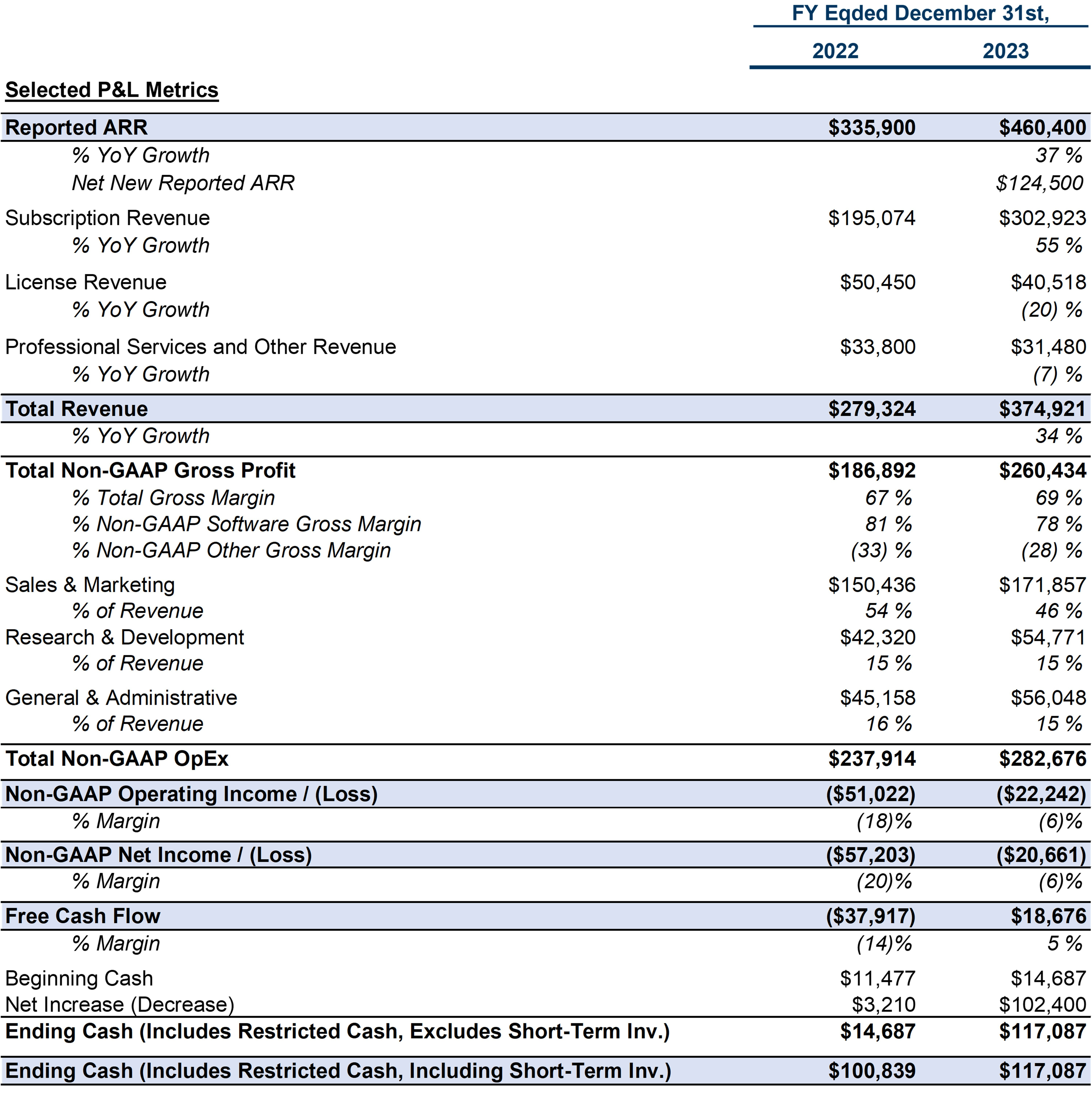 Below are OneStream’s annual non-GAAP P&L and key metrics.