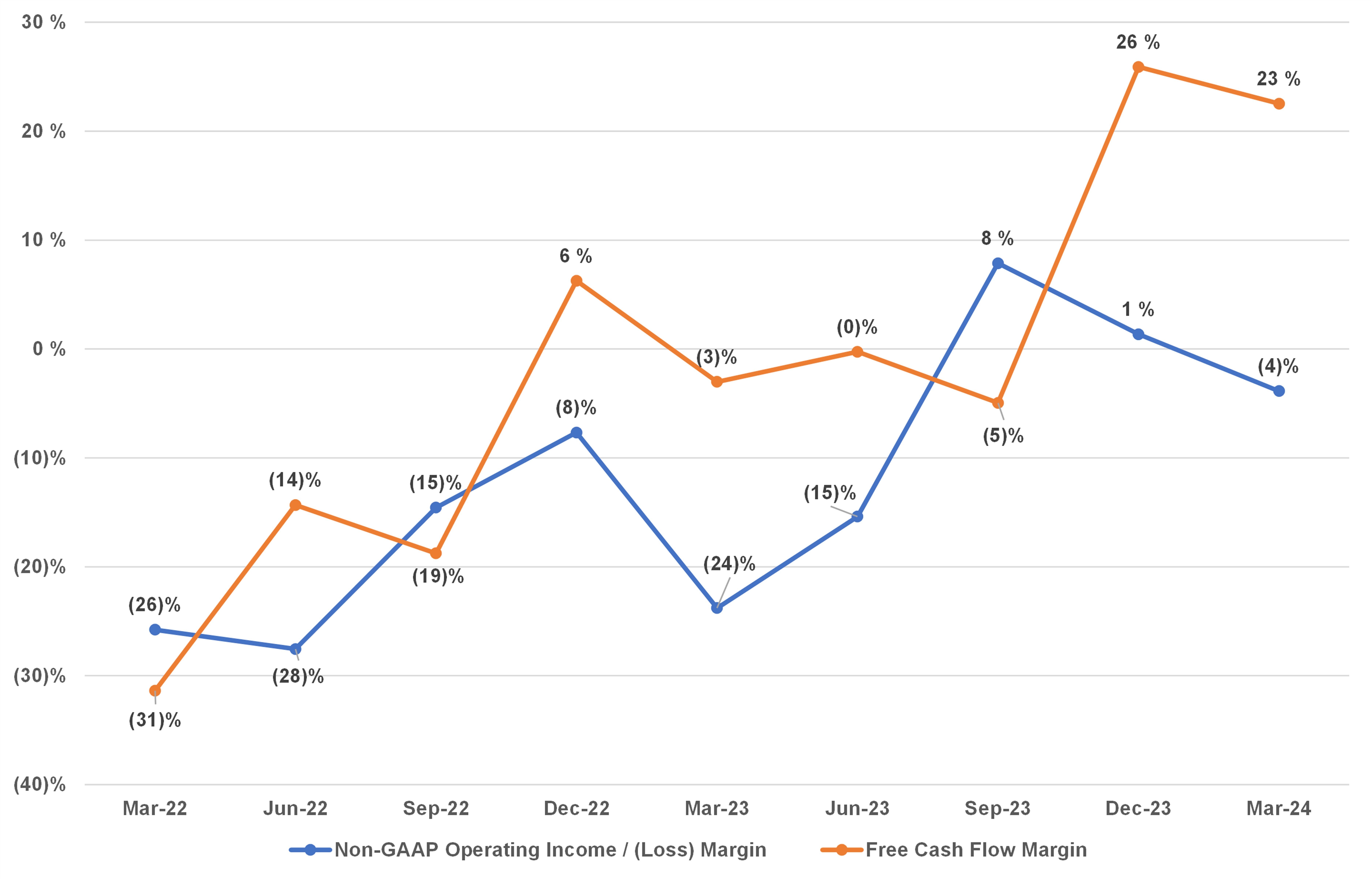 Both non-GAAP operating margins and free cash flow margins are increasing.