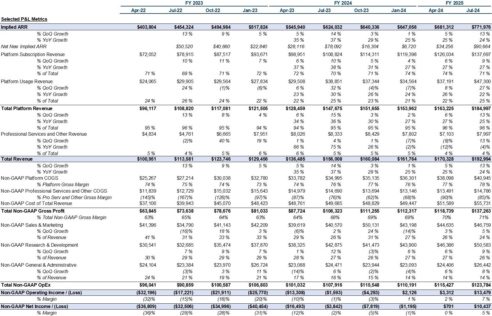 $772M of implied ARR last quarter, growing 24% YoY. The company added $91M of net new ARR in Q2. There is seasonality in Q2, hence the higher figure