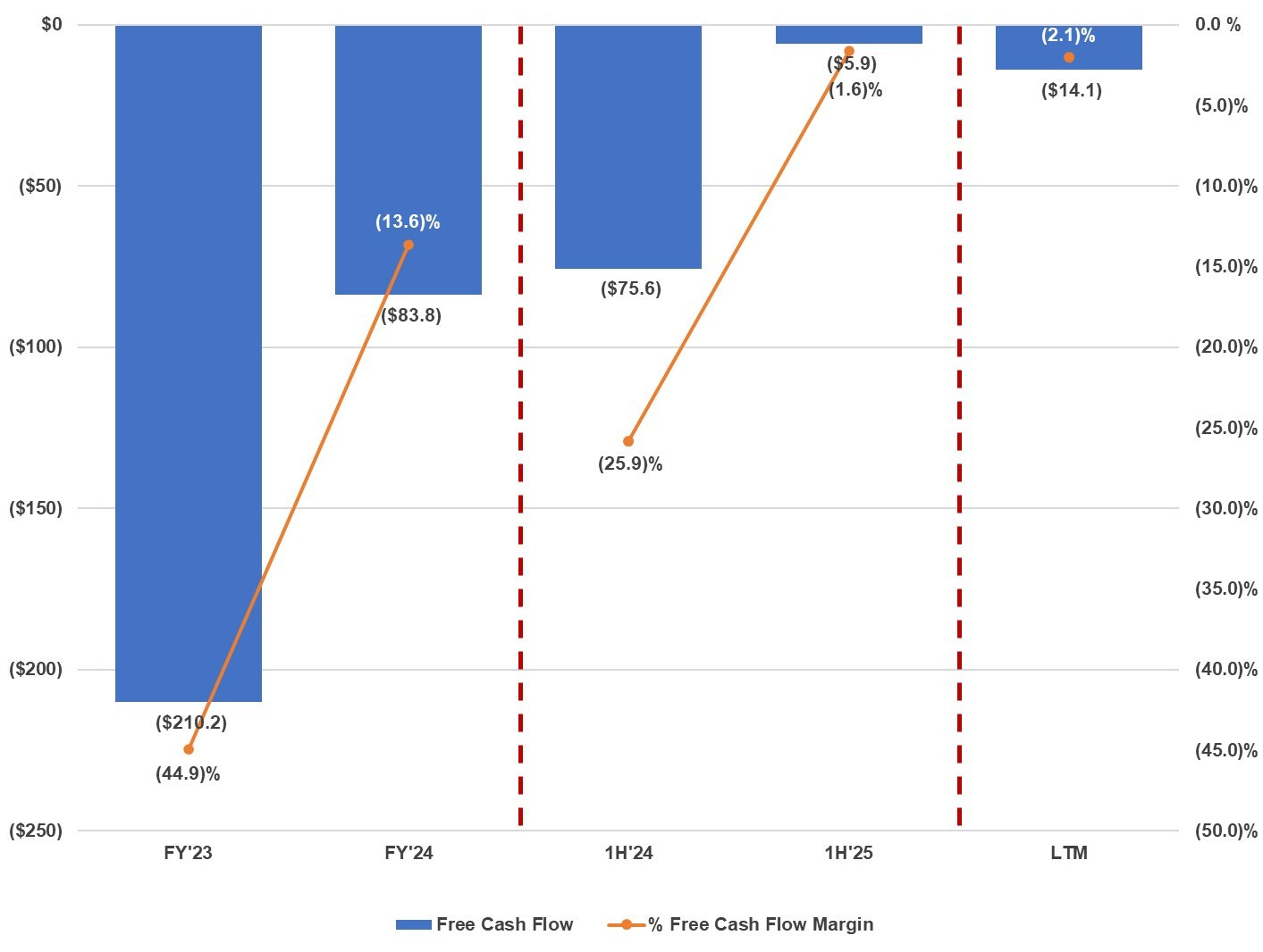 ServiceTitan discloses free cash flow for only some periods, and in the first half of FY’25, they were almost free cash flow breakeven.