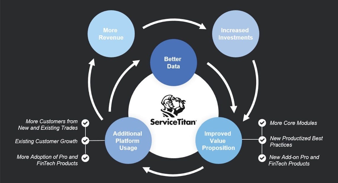 ServiceTitan, a venture-backed vertical software company for the trade industry, filed for an IPO. The company plans to trade on the Nasdaq under the ticker “TTAN” and Goldman Sachs is the lead banker on the IPO. If all goes according to plan, ServiceTitan should be trading in the next few weeks and will be the 3rd venture-backed software company to IPO this year, behind Rubrik and OneStream. ServiceTitan will be a barometer for the dozens of other software and tech IPOs waiting for the IPO window to open. ServiceTitan offers an end-to-end cloud-based operating system for trades such as plumbing, HVAC, roofing, pest control, garage door maintenance, landscaping, and many others. The software runs customers’ entire business vs. just specific workflows. This operating system can generate leads, schedule jobs, dispatch teams, take payments, run back-office operations, and everything in between. ServiceTitan was founded in 2007 (launched in 2012) and is run by founders Ara Mahdessian (CEO) and Vahe Kuzoyan (President). The co-founders started the company after having parents who worked in the trade industry and saw how the industry lacked modern software. Their platform is designed to address the following critical workflows within a trades business: 1) CRM (customer relationship management, including sales enablement, marketing automation, and customer service), 2) FSM (field service management, including scheduling and dispatching), 3) ERP (enterprise resource planning, including inventory), 4) HCM (human capital management, including compensation and payroll integration) and 5) FinTech (including payments and third-party consumer financing). ServiceTitan is a $772M implied ARR business growing 24% year-over-year with almost 10,000 total customers. Customers range from mom-and-pop contractors with a few employees to large franchises with national footprints of over 500 locations, and on average, an active customer (defined as a customer with >$10K annualized billings) pays ServiceTitan ~$78K per year. Given the mission-critical nature of the product, ServiceTitan has strong retention with >95% gross dollar retention and >110% net dollar retention for each of the past 10 quarters.