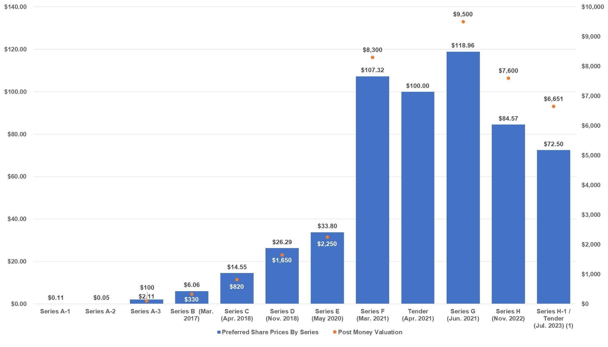 Source: S-1. Note: Blended price calculated as the weighted average share price of the ~400K Series H-1 shares issued at $84.5712 per share and the ~1.9M tender offer shares issued at $70 per share.